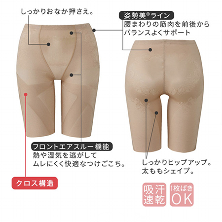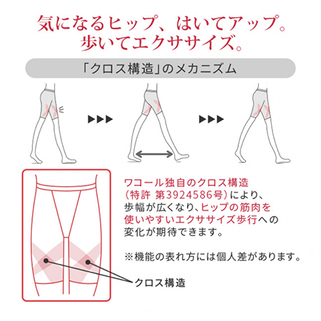正面有專利的交叉設計,在走路時對於臀部的肌肉會形成鍛鍊的狀態,而達到臀型提升,體態優美的期望。