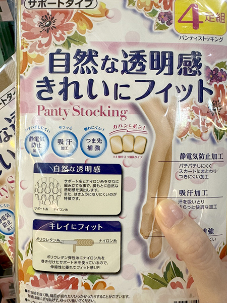 以自然的透明感帶有柔膚效果的絲襪為名,一組四雙的超級優惠而受到好評。