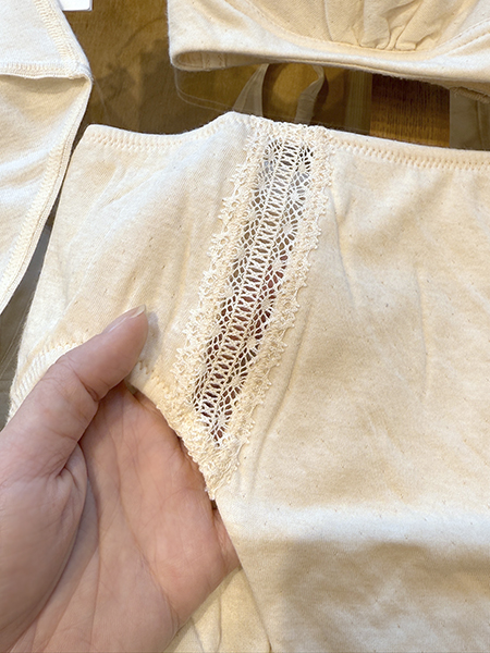 這是一款充分利用了柔軟的材質,適合敏感肌膚的人的「全有機短褲」。布料以外,連花邊和縫紉線,全部都是講究100%有機棉。
