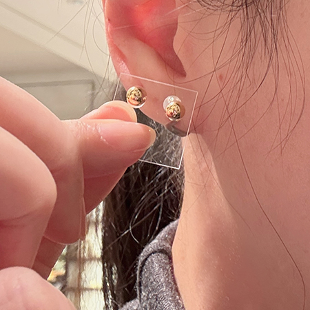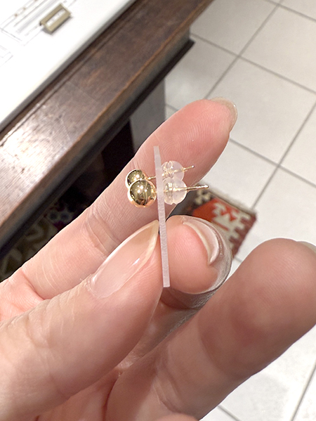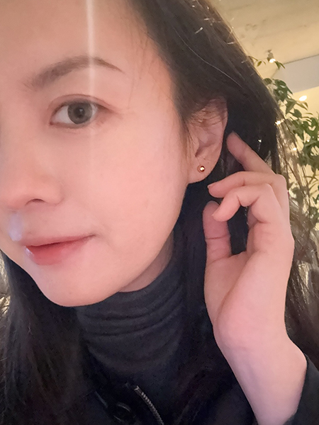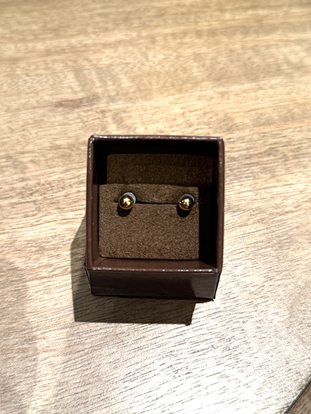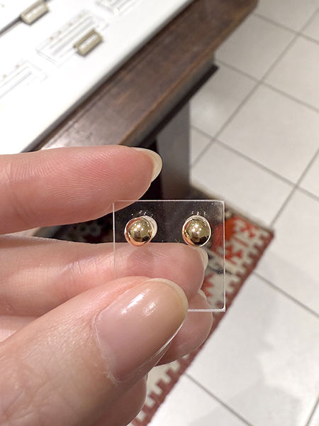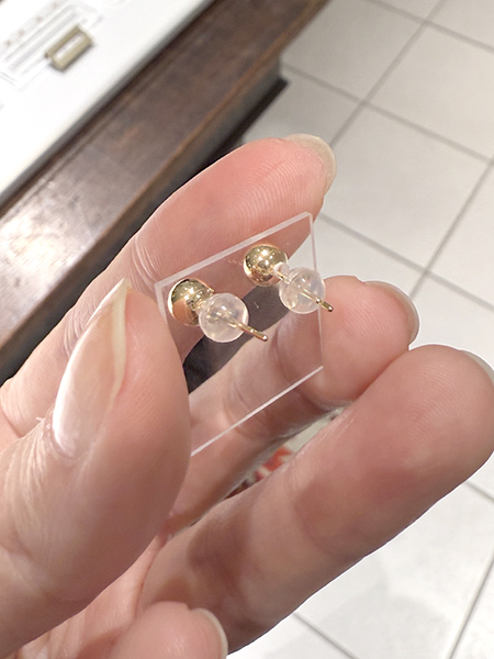 這款耳環是K18製作,金色小圓球的耳針設計。
