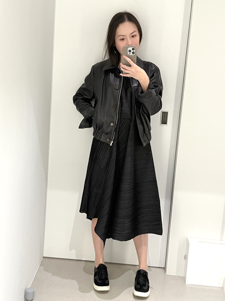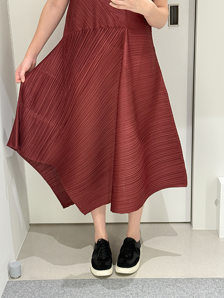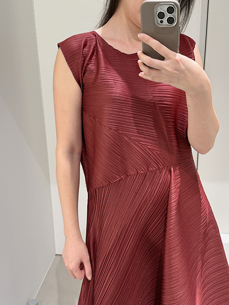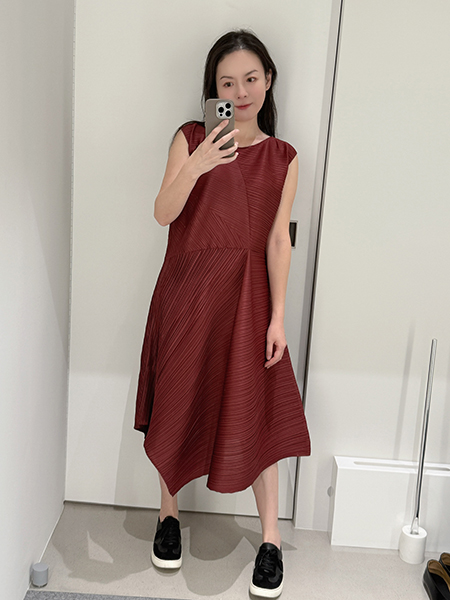 顏色有基本的黑色與酒紅色。「黑色小洋裝」是女生衣櫥必備的品項,而這款的黑色是能夠讓人穿出設計立體感很出色的一品,酒紅色是這次的季節色,很氣質的顏色,店員是說蠻多人是會選這色繫上黑色細皮帶,來凸顯腰部的纖細。