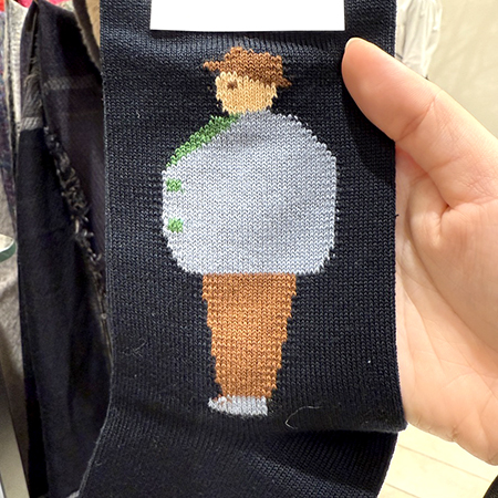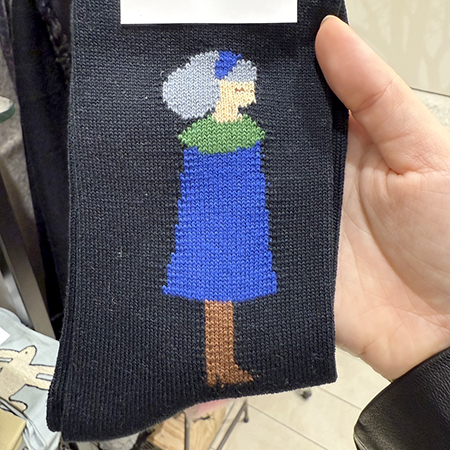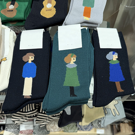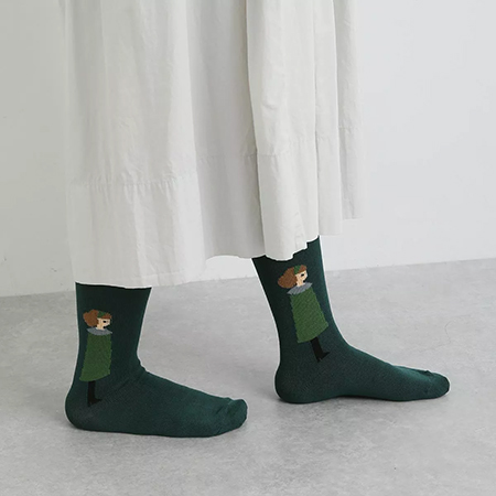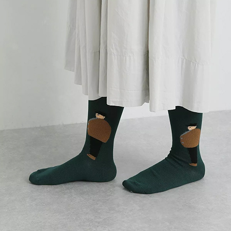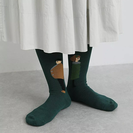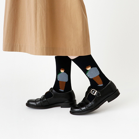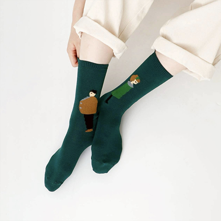 每一隻襪子的兩面分別是一男一女的情侶。(賣場的兩款黑色可以交叉穿,便會有兩對情侶在腳上)