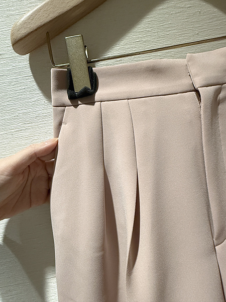 正面採用雙褶設計,即使穿上上衣也能成為重點同時產生立體感。