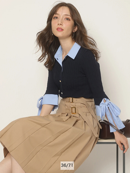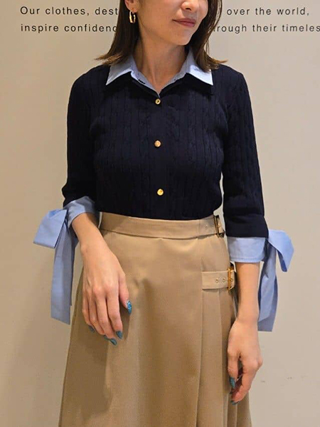 配上了淡藍色襯衫領優雅知性,敞開後卻又能有著休閒的氣息。